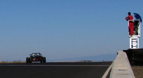 This car previously only moved about 20 feet under power when we loaded it into the trailer, so this would be a true shakedown working up to speed slowly. As part of our final prep we removed the stickers from the tires and Alex headed out on track. A quick check afte two laps and he's back out for a full 35 minutes. From the tower I could see he's having fun! :)