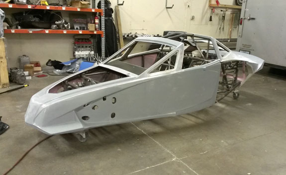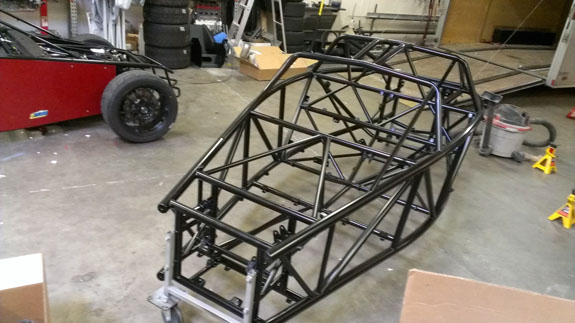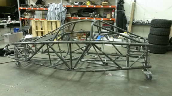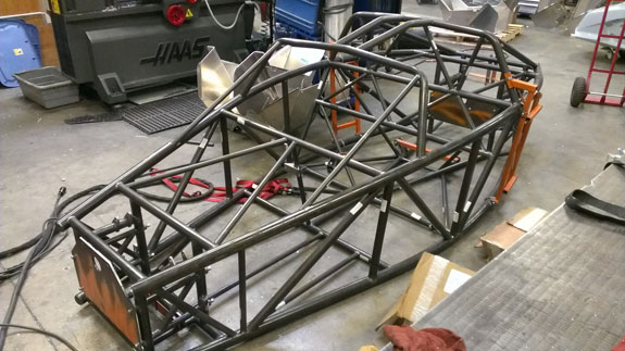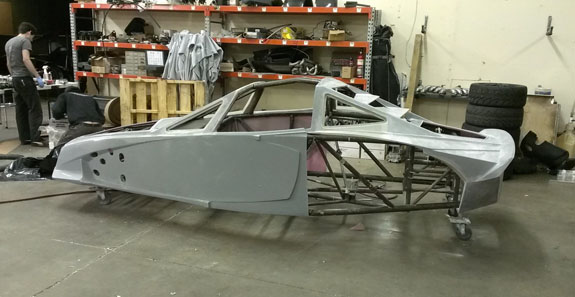 The post-cure of the molds was done on the plug to keep them dimensionally stable, and the plug did not take well to oven heat. This was expected, of course. Its job is nearly done. The only other use I have for it is to create the gullwing doors and it's good enough for that. There is a good deal of progress on other items as well, more on that shortly. 12/11/13 A few more steps forward. Couple days ago the #5 chassis came out of the jig. To speed up manufacturing we're farming out the finish welding to a trusted fabrication shop.