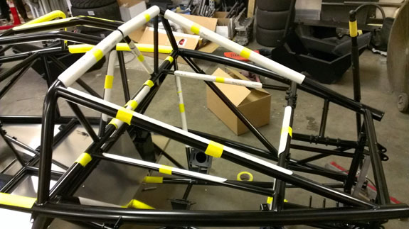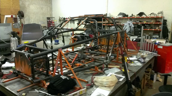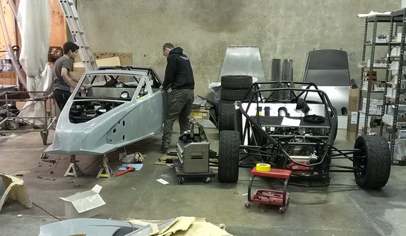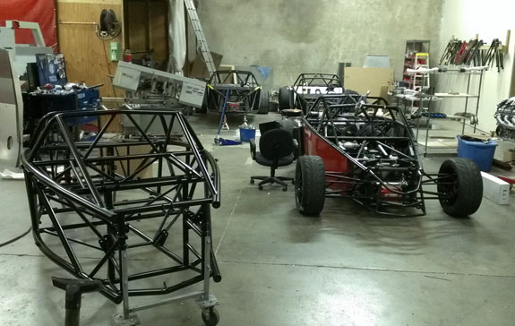 Looks pretty good to me. I think this will be part of the 'official' color scheme. Chassis #5 is now off to powdercoat, #6 is in the jig. First 5 bodywork sets are made and we're finalizing the trimming and mounting scheme. The year is off to a good start :) 01/18/14 Another list of updates... A week ago we sold D2 #12 which is gratifying - the momentum continues. In order to get more efficient at cranking the cars out we've made some changes to our workspace, moving inventory out of the shop and into a dedicated area. We now have more space to work on cars and better organization and control of the parts onhand.