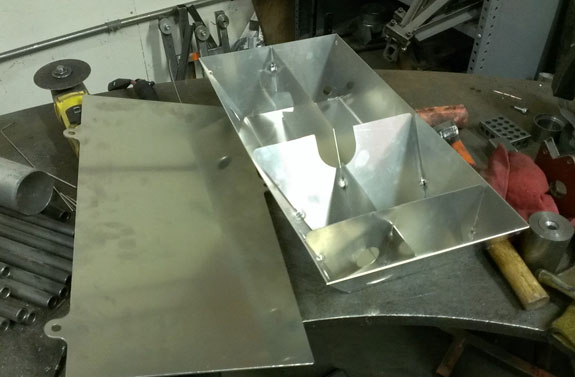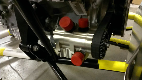 The drysump tank is now welded and test-fitted in the frame. Again all is as per CAD.
