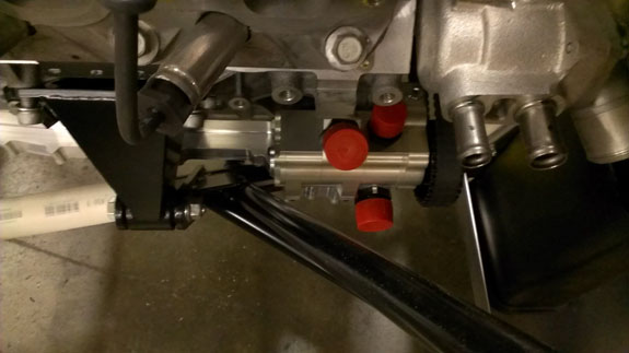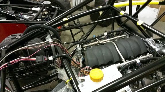Plumbing still needs to be figured out and installed. In the meantime we're adjusting the standard GM harness to better fit the car and to interface to our wiring.