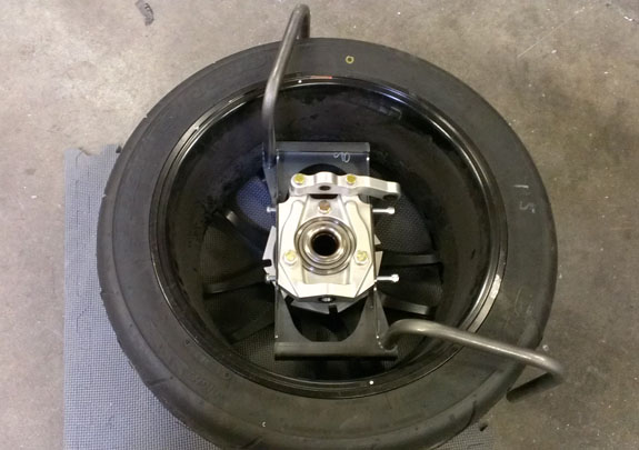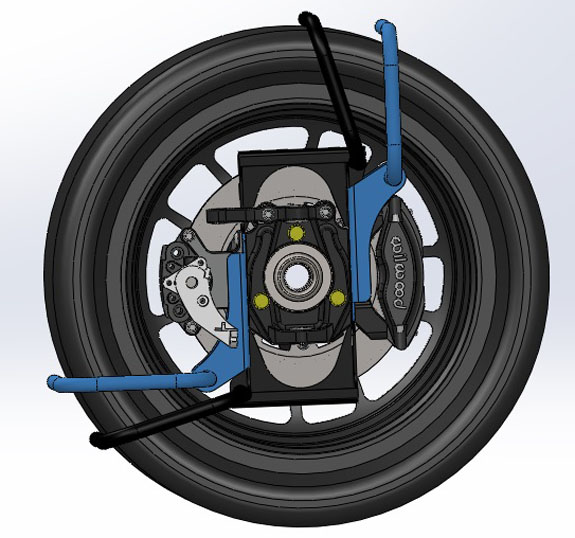 The fender mount parts are here as is the fixture and we've welded up the first one. Still some tweaking to do but it'll work. The mount adds 5 lbs of unsprung weight but it needs to be sturdy enough for 150 mph+. It also needs to clear all the suspension parts through full range of motion including turning which is no easy task and is the reason for the somewhat odd shape. The future LMP-style fixed fender option will address this for those who are concerned with this type of thing (like myself).