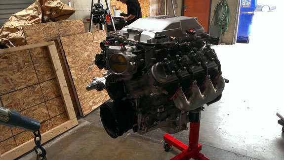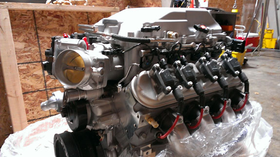 For our racing effort the LSA engine is here thanks to Pete. The location of the intake is different from regular LS3 and is going to be challenging but we'll figure it out.