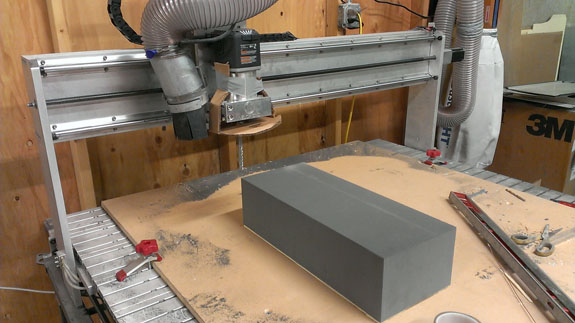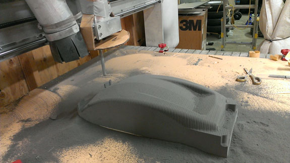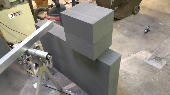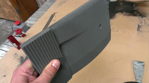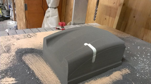 The results are pretty cool though and it still beats doing this by hand! Below are a few steps in making a part (this is the second piece of a fender plug, from raw foam to rough cut).