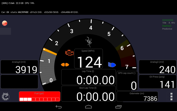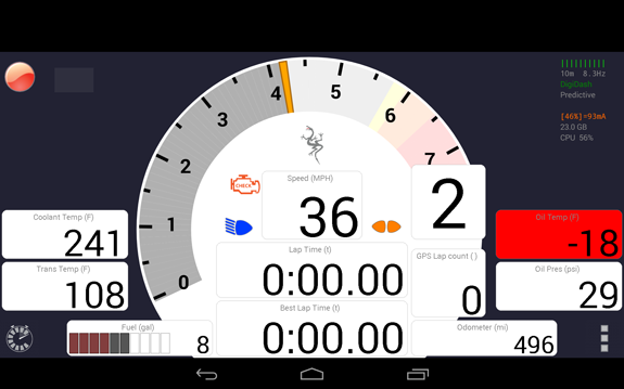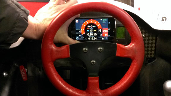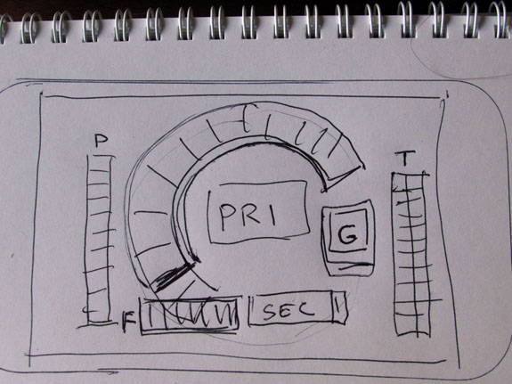 We've learned quite a bit with using the prototype digital dash that Pete and Josh are developing. Initially we tried displaying all kinds of info but out on the track I've found that only the tach and a couple key pieces of info are useful. So I made a quick hand sketch of what I'd like the display to look like and Pete has implemented a first-cut prototype of it.