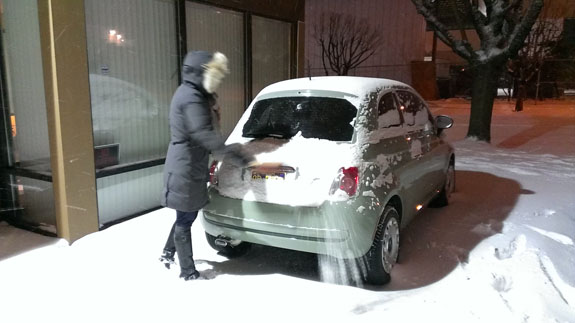 The first painted bodywork is done. I was going to pick it up today but unfortunately nature had other plans - snow. It doesn't happen often around here and it's always a big deal when it does. The painter's facility is about an hour north, at the top of a long hill and at the end of a 2-mile one lane road. That isn't happening with a trailer. So we wait. And M gets to clean snow off the Fiat. The novelty of the experience makes it fun for her... Good! Having lived in Cleveland for 9 years I swore that if I never clean snow off a car again it'll be too soon. One person's dreaded chore is another's adventure. I'll drink to that.