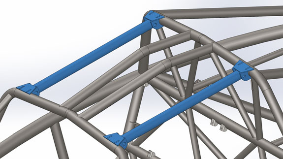 The #6 chassis is in the rotisserie and the jig is ready for #7 - our race car. For Pikes Peak we'll need to add removable braces in the corners of the rollcage - boulder intrusion is a real risk in an off so the cage openings have to be below a minimum size. The mod has now been designed and approved by PPIHC, we'll make it after the basic frame is welded. It'll be an option for those who want it but it'll have to be orderd at build time.