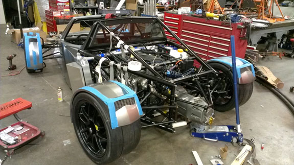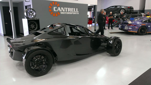 04/30/2014 This is a milestone post on this blog. The big news is that the D2 chassis 001 is finally ready for delivery. Alex put his deposit down exactly 3 years ago, 4/28/11. on 4/28/14 we took his completed car up to Seattle, to display at Cantrell Motorsports event for Team Seattle. The new Cantrell facility is awesome and the event was top notch. Click on first picture for larger version if you'd like a desktop background. The interior turned pretty cool as well. Years ago I got a track ride in a Ferrari F40 and the nature of the car - raw, functional, unapologetic about being a perfomance machine first and everything else second - really made an impression. It's what I decided the D2 should be (and the D2 is actually the faster car around a racetrack ;). The interior has some F40 inspiration in it, mostly the suede-covered dash panel.