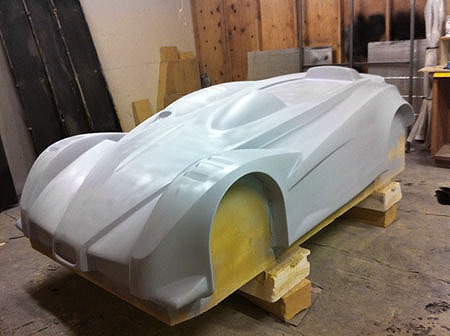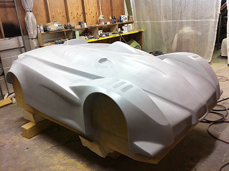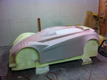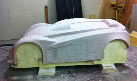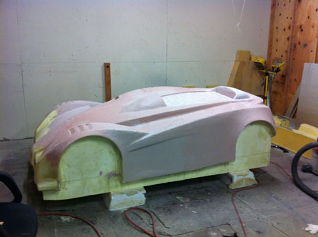 Cantrell Motorsports will service Palatov cars for Seattle customers. They are also our first commercial sponsor for the Pikes Peak effort! 12/10/11 With all the other stuff happening I haven't done much sanding on the D4 plug lately. So today, a Saturday, I set aside pretty much for that. A great deal of progress made and then much staring at the result. There's one thing that's been kind of bugging me, the way the nose looks currently. It is compounded by the fact that as I've learned there needs to be a change there for optimum function of the underbody. The original rough concept had an 'open' nose (as did dp1):
