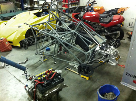 There is a whole lot of sanding ahead but so far the new approach seems to be working quite well. One of our goals is to become very efficient at doing custom composites to support our various projects and this is getting us quite a ways down that road. The CFD work continues and while some initial guesses have been confirmed there have been a few surprises as well. So far it seems the differences between D4 and D1 are all in D1's advantage, i.e. if we were to change D4 architecture to improve it aerodynamically it would be more like D1, so I'm really looking forward to the development on that car (for many reasons :). I now have a set of strain gages and amplifiers to eventually correlate the theoretical testing with real life. In the near term Pearl will be taken apart, updated, powdercoated, refitted with a new floor and then instrumented with the strain gages. Still hoping to do some testing later this year. We'll see. M has been quite successful at restoring her old bike so maybe she'll have to take the lead on Pearl's updates. It is her car, afterall. 11/21/11 The next big push will be the three D2s that have been pre-ordered. That will happen when the first tubing kit arrives a couple of weeks from now. In the meantime we've been busy getting ready for it, which means moving other projects along. The D1 is all taken apart, finish welding is complete, all the tabs and brackets are in place and parts are ready to go out for paint/anodize. We'll combine them with the Pearl parts in a batch so Pearl disassembly is nearing completion as well. M did a lot of the initial work and now Tristan is finishing up big items like pulling the engine and suspension boxes.