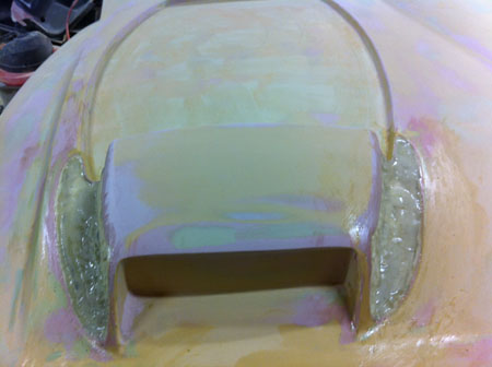 Functional benefits aside, I think it looks cleaner and more aggressive. If I'm going to do it now is the time. About an hour's work on the plug before molds are made. After... it'll be more difficult. There are pros and cons both ways so it's not an obvious decision but I'm strongly leaning towards grabbing the saw once more. In other news we have just passed $20K in sponsor contributions for our Pikes Peak Quest, vast majority of it from individuals - many thanks to all our sponsors for the support! The financial aspect is obviously awesome but equally as important is the fact that there are people out there who believe we have a shot and are willing to show it. I'm honored, truly. 12/13/11 Well it was more than an hour (probably closer to 3 altogether, spread over two days) but the nose mod is done.