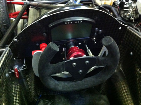A final thought on the D1... You saw how capable the D4 in its last-season form is. Now, increase the power by 2.5X. Add a 30ms electronic paddle shifter just for fun. And AWD. Penalize it with about 150 lbs weight. Roughly double the downforce. And cut drag a bit. Next summer will be fun. 12/03/11 First, the big news that those who follow us on Facebook already know - we are looking for individual and commercial sponsors to help us compete in the 2012 Pikes Peak hillclimb. Details are on our site but I do want to point out one unique thing about our program: contributions over $1K can later be fully applied towards the purchase of one of our cars and if someone puts up the full 'price tag' (which is quite modest) they actually get to OWN the racecar after the event. Won't find many deals like this one :) On the D4 front, the new dash is now installed in the customer car - turned out nice.