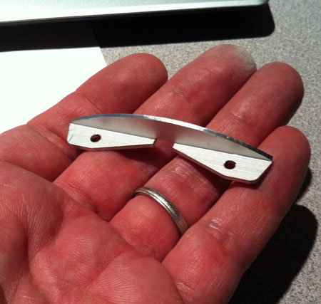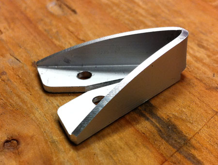 12/15/11 It's a steep learning curve but we finally made our first part on the CNC. To get to this point we had to take care of some maintenance, get tooling, tool holders, collets, coolant and a few miscellaneous supplies. There was also the task of getting a computer to talk to the mill, getting Mastercam set up and the most time consuming - actually figuring out how to use it. I'm accustomed to the intuitive way SolidWorks operates. Using Mastercam is a huge contrast and not in a good way. It is almost as painful as trying to use Autocad. When people hear CNC they think you just load a file, push a button and the computer figures it all out for you and makes the machine spit out a part. Nothing is further from the truth. There are two aspects to what makes CNC machining difficult. The first is the art of fixturing and this is actually the fun stuff. Figuring out how to hold a part in place to accurately machine it, which tools to use and how. For all but the simplest parts fixtures have to be designed and often machined. Sometimes one can get away with a vise, a few clamps and various wedge-type devices but if the part moves it (and usually the tool) is trashed. So at least some degree of custom fixturing is the norm and the ability to figure out an efficient and effective way to do it for each part is what separates a good machinist from the rest. Fortunately we know a couple good machinists to call for help when needed - and have already. The second part is the really annoying stuff - just knowing all the idiosyncrasies of Mastercam, the machine and the way they interact. For example when defining new tools there are parameters for tool number, diameter offset number and depth offset number. The machine expects them all to match since it stores offsets for each tool when they are set up (quite a process in itself). In Mastercam the default number for these parameters is zero and each has to be set manually, in different dialog boxes. If they don't match the machine can crash so normally it gives you an alarm... unless, apparently, the number is zero which it lets slide. Took us half a day and a broken tool (thankfully nothing worse) to figure it out. It would be trivial to make offset numbers follow tool number as a default in software, or at least put them next to each other in same dialog box, and for as long as Mastercam has been around it is baffling why this isn't the case by now. There are countless little items like this. I'm sure we'll be discovering them for months to come. Anyhow, our first part had to be simple enough to not spend a lot of time on programming or fixturing but complex enough to get a feel for the process. Enter the vortex generator - a nifty aerodynamic device that we plan to use a lot. This particular flavor of it is called the Wheeler VG and was invented by Gary Wheeler (US patent 5,058,837 for those curious about what makes it special and yes we have permission to use it). The reason for choosing this design is the fact that unlike conventional VGs it's compact, robust and creates a very large vortex pair for its size (or conversely allows a much smaller device for a given vortex size). Perfect for putting on the bottom of a floor that's 1" off the ground.