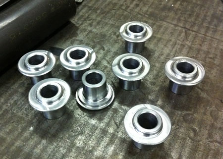 There are two operations so after the first one is run the parts are flipped in the jaws and the other side is machined. Soft jaws are some of the simplest/easiest fixtures to make, the more complex parts will require more setup. But this does show the process and illustrates why prototyping and low-volume stuff can be expensive. Fixtures have to be made whether making one part or a hundred. Now that we have this particular part all set up we can make a set of 8, enough for one car, in about half an hour. It took a couple days to get to this point but we'll definitely get better at it. The long-term goal is to get to this stage with all our machined parts. There are several hundred so it'll take a while but only a couple dozen really critical ones. Anyway, 2012 promises to be a fun year with more than its share of challenges! I'm very excited about the Pikes Peak adventure in particular. This is us going up against the world's best with the clock as the judge, no wimpy rules to 'level the field' and no excuses. Given David's track record on the mountain we know the driver is up to the task so it's all on us to show what we can do as a designer, manufacturer and tuner of race cars. Wish us luck! :)