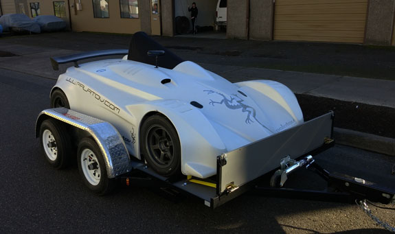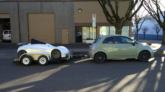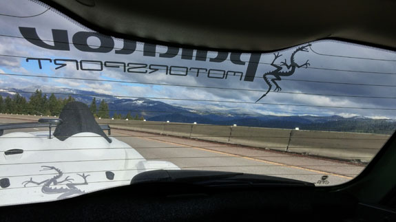 03/04/15 There's theory and there's practice. Sometimes they don't agree. But when they do, it's rather gratifying. In this case, the theory is that a very light racecar on a very light trailer can be towed by pretty much any vehicle. To prove the point, we just happen to have one of the smallest cars available in this country and the fourth toughest road to tow. We also need to get Pearl down to Monterey to reside with Jonathan, where he will continue to demonstrate what the car is really capable of. We have one day to get there and 740 miles to cover. We've tested it a few days earlier with M towing to ORP and back. But this is kicking it up a few notches - mountain passes, distance, and variable weather.
