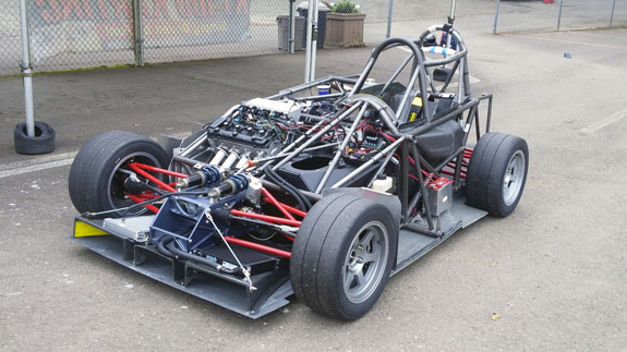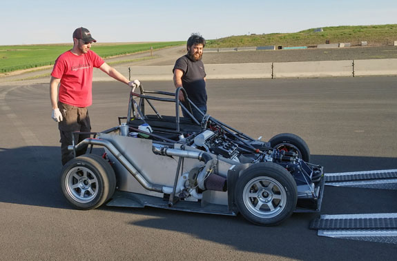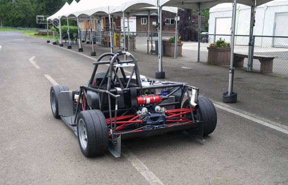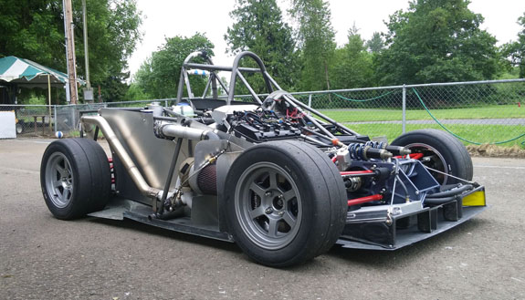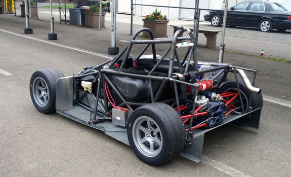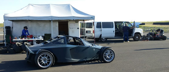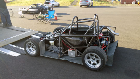 The weekend done, we are left with an urgent puzzle to solve. We followed a couple promising leads today but no solution yet. This reminds me of my past electronics days. Sometimes things just refuse to work and you know it's a simple fix, a half-minute thing (the 'make-it-work' bit) but it can take a frustratingly long time to find. We'll get it figured out, I have no doubt. In the meantime the virtual version of the car is nearly ready for release. Here is a video of the rFactor2 D4 on a beta version of ORP. 05/20/15 To get the engine figured out I took the car up to Seattle to George Dean who did the dyno tuning. Sure enough, he fixed the issue in about 20 minutes. When we installed the Geartronics paddle shifter we replaced the standard gear position sensor with Geartronics-supplied one. The new sensor has a connection for the ECU but that wasn't hooked up so the ECU was thinking the car is in neutral. The neutral map wasn't updated outside idle and low rpm. Our injectors are almost double the flow of stock and fuel pressure is 55psi vs 42 stock, so it's no wonder anything off-idle would run super rich and foul the plugs almost instantly. George added a resistor to make ECU think it's in 5th gear and all is well now - that was the simple fix I expected. Six hours on the road roundtrip but sometimes that's what it takes. Yes, I could (should?) have gone through everything wire by wire but just way too much on my plate to pull the harness out and focus on the meticulous task. Now things can move forward. Before we take the car apart for paint and powdercoat, I wanted to run it a bit to make sure all the systems are working properly. Scheduling a test took a few days but finally I was able to use Pat's Acres kart track for a couple hours this morning.