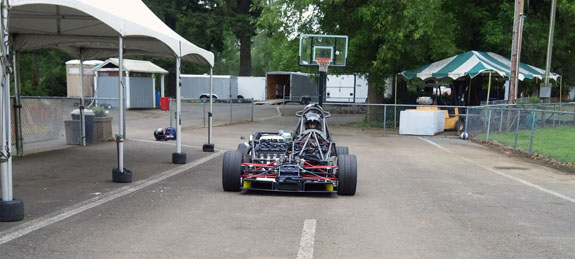 We go to fire it up and that's when things start to go less smoothly. The engine runs but very rough and rich. We go through a number of diagnostic steps but nothing seems to help. Something changed from when the engine was run on the dyno (which was pretty much perfect) and when it was actually installed in the car. The main suspect is the wiring but we check out the vacuum lines, MAP sensor and other things too. At some point I decide that rough or not, I'll at least try it out in the paddock. Here's the video. On the plus side, the chassis feels awesome and I don't say it lightly :) The D4 with AWD is a really symbiotic combination. It is the reason for the side-engine layout, the design was basically created around the AWD system. This would be the ultimate autocrosser - in a parking lot you really can't ask it anything it won't do. The engine - well, witnessing the dyno pulls I know what it's capable of but it wasn't doing much of that now. So we spent a lot of time trying to diagnose what is wrong and for a brief moment we did get it to cooperate. Enough for a lap wth the customer at the wheel, then it regressed into not running. Fortunately we had our ever-faithful demo D2 along to provide track time (and blistering pace with Jonathan at the wheel, more on that on Pikes Peak blog).