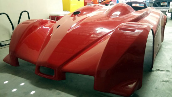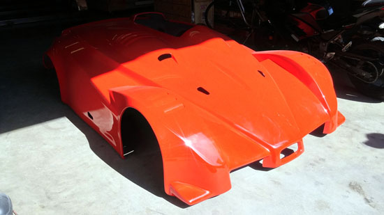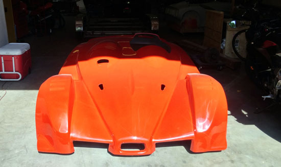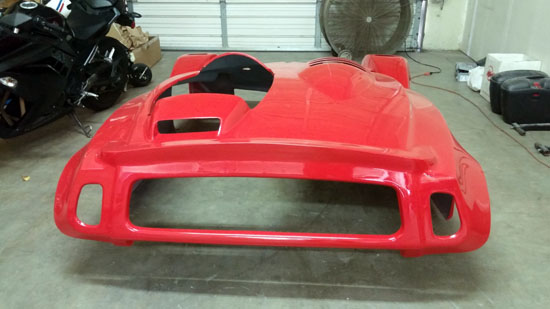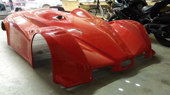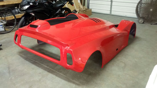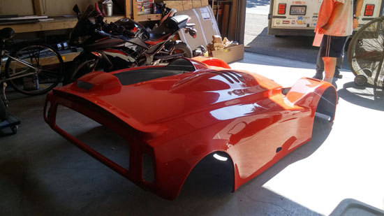 And yes that's a Drakan frame in the background. The bodywork is also back from paint. It's a Ford Race Red color, per customer request. I took some pictures in and out of the sun.