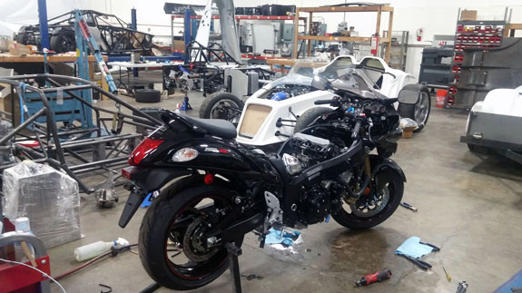 One more D4 item is one of Tristan's perks: he gets to build his own, albeit using old-rev parts when possible. Whenever he's not busy with customer projects, that is - which explains why not a lot has happened on his car in the last four years. Even though we have an old-generation frame, old-generation suspension boxes and the first prototype bodywork for him to use. But we need more cars out there, being driven, so I've made it one of our many priorities to get his car done. And he's more than earned it. Now we have three D4s in progress, all of which will hopefully be running by Spring. The Hayabusa we got as donor for the turbo D4 didn't sell - or rather it did, but despite me writing NO ENGINE in three places in the ad, including in the title and right above the 'bid' button, the buyer wansn't aware that there is no engine. Therefore he didn't pay. So, out $40 in listing fees, I relisted it. The bidding went to $5,400. I contacted each of the top 4 bidders before auction close, to make sure they knew there is NO ENGINE. Just like it says in the ad. They all went away. Argh. So now we'll be parting it out. And finally, nothing really to do directly with D4s, but yesterday we had a film crew take over our shop for the whole day. It's a project that we hope will take off. We'll see...