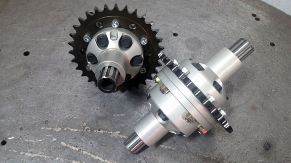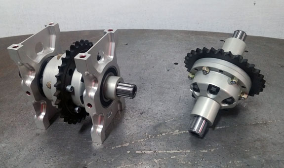 As with almost all our parts, any time we make a new batch we incorporate everything we've learned to date and make updates as needed. The black part in the picture below is the old rev. Changes are subtle but numerous. They are primarily centered around better sealing - main seals, bolt seals, tolerances, etc. The way sprockets are mounted to the diff is also updated as we have managed to shear off all six mounting bolts in the past. New setup is stronger (old parts can be updated if need be).