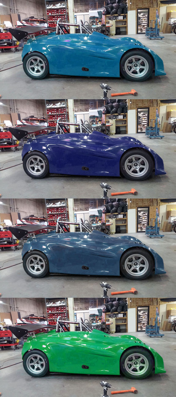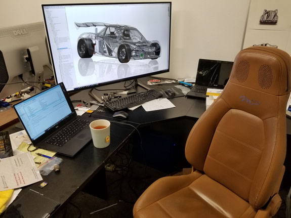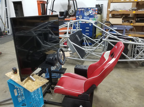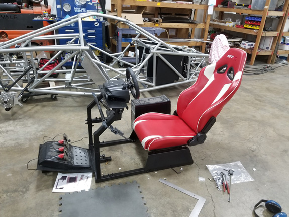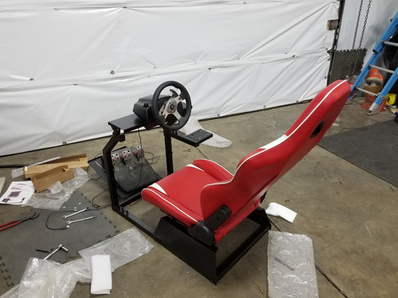 She ended up picking a blue that's different from all the above, a BMW metallic color. Should come out nice. I've metioned before that we have the D4 in rFactor2 simulator, as well as a beta version of ORP track. With Pearl eventually being available for rent at ORP, we decided that some virtual prep would be a good thing to have available for would-be renters. So we are now building a sim rig that will reside in ORP office. Still needs tweaks, but it's coming along.