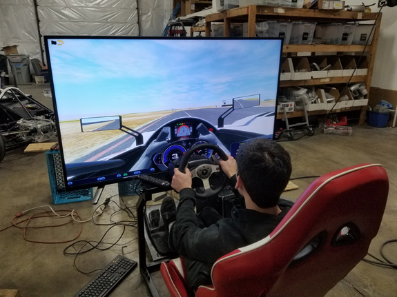 It's a 4K resolution 55" TV mounted to give a proper field of view. Needs to shift down about 3" from the picture above to give correct view of the gages through the steering wheel, so we will modify the mount shortly and then dial everything in. And speaking of 4K displays, they've now gotten cheap enough that I treated myself to a monitor upgrade, in 43" size. For reference the laptop has a 15" 1920x1080 screen and the text appears the same size on both it and the monitor. Gotta love the steady progress of technology.