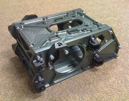 On the plus side it's something I only need to do once (famous last words). At any rate it beats having to make each tube by hand in the Bridgeport. In the process of doing various tweaks I've decided to beef up the frame in a few spots. Yes, it did add ten pounds to it (for a total of 90). I figure it's going to be a 160+ mph little device so 10 lbs is a small price to pay for a bit of extra safety... Not that this line of thinking is getting me any nearer the original weight goal. The full package is now out for quotes, we'll see what I get back. 01/13/10 In parallel with updating the first prototype we've now started construction of the first production dp4 - this will be a GSXR-1000 powered, RWD model with a mid-level spec and it is the first car available for sale. Final pricing and details are still being worked out but should be announced in a few weeks. Contact me for more info. To officially kick off the build we've put together anodized suspension boxes. To me they look much cooler than the bare aluminum ones of the proto.