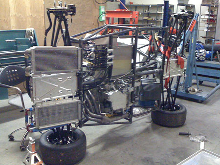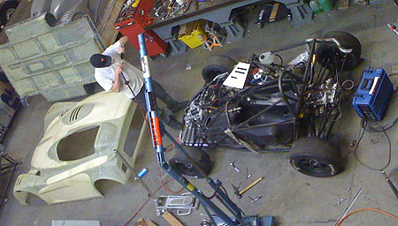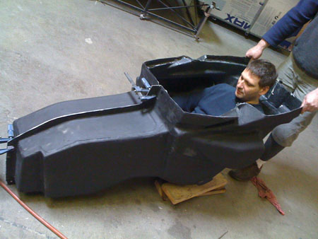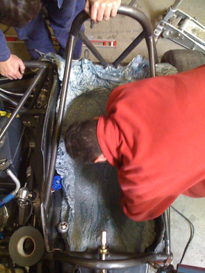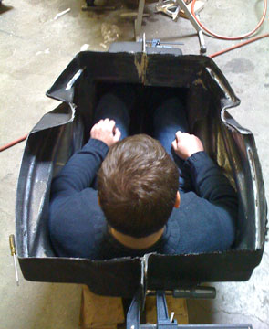 More soon. 03/08/10 Now that the Pilot Pod is finally here we can put the car back together and get it ready to run. It'll take a few days but now it's 'just' a matter of getting it done. The goals for the Pilot Pod were to serve as a seat, isolate the driver from the rest of the car and to provide support while still allowing room for elbows so that the driver can fasten his/her own belts. Seems to work well.