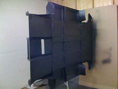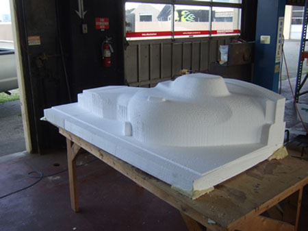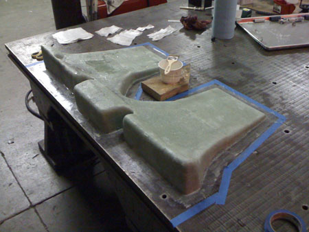 All the stuff in progress will shortly come together. The cockpit liner is just about done, the floor and body are almost ready to be attached and lots of other stuff is falling into place too. It's busy. Busy is good. 03/05/10 Time flies. The new trackday season is about to start so we need to get the prototype ready for further testing. The 'cockpit liner' is supposed to be here this weekend and it's the final major piece that we've been waiting for. In discussions about it the term 'Pilot Pod' came up which I think is a good way to describe it. So the 'cockpit liner' is now officially Pilot Pod (TM). In the meantime some minor things are being worked on. Tristan made a fiberglass radiator duct for the prototype. The production version will be made in a mold but radiators will be somewhat different so it made the most sense to just make a one-off for the proto. The layup was done right on the big iron table - worked great.