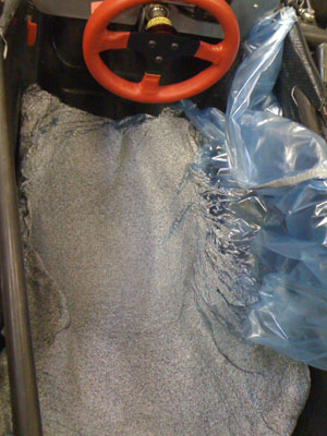 04/06/10 Keep meaning to post another update but keep getting sidetracked... Anyway, the bead seat is now fully trimmed. The kit comes with a big roll of gaffer's tape and it's just enough to cover the entire seat. We split it into three sections, the bottom and two back halves. Makes it easier to handle this way.