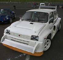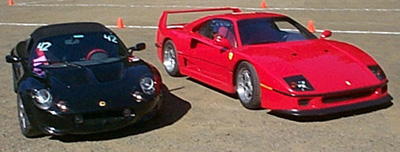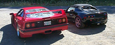 He followed me around in the 340R for a while, and mentioned that my inside rear wheel is off the ground sometimes. That explains the back end feeling a bit floaty. Judging from other pictures of my car (and the way the car feels in the turns), I gather that the inside front is levitating as well. Hmm... I couldn't run away from him. All I know about his stints in the F50 is that he didn't pass me, which is good enough for me. When I took a passenger for one of the sessions, the gentleman mentioned that going into turn 1 I was letting off the brakes at 80. Going into the turn I couldn't get a peek at the speedo myself... but I know i was getting on the brakes at about the 400-foot marker at 130+ mph. Yee-ha! 9/1/00 A lotus club day at PIR. Got four good dry sessions (decided to sit out the couple rainy ones, it's just too stressful and not so much fun). A few interesting cars showed up, including a street Elise, a Group B MG Metro rally car, a genuine Porsche 959 ...