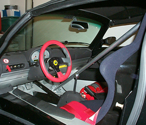 The interior is all business. If you want carpets, stereo, AC - look elsewhere. Takes some practice and agility to get in and out. About 1600 pounds, 190 horses. No distractions needed here. The chassis is a high-tech bonded aluminum structure: