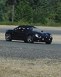 6/10/00 Track day #3 for the Lotus, a BMW/Alfa/Porsche club event at PIR. It's a fast track, with the Elise getting up to about 125 mph on the back straight and 135 mph on the front. Of course it rains after the second session. Put on P-Zeros in anticipation of foul weather, but they really don't like the new camber settings in the wet. The first session in the rain I take two laps, mostly sideways, and call it a day. Just as well, as the next lap is black-flagged when a 911 Turbo goes into a wall. Some birthday present from mother nature. And nobody sends me pictures of my car, either :(
