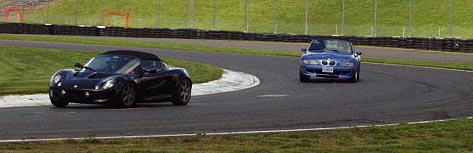 8/25/00 A BMW club day at PIR. Weather is perfect, finally starting to use the Lotus to its capabilities. Didn't get a lap time, but seemed faster. A 'fellow' Elise owner brought two of his many toys...
