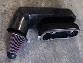 OK, back to work now :) 9/30/01 After pondering all my problems with the ECU (I've been getting 9MPG with this tiny car), I've decided to reconnect the manifold pressure line which Lotus told me to disconnect. Sure enough, the car seems to respond a lot better now. Not much time to test the change fully due to my travel schedule, but I'm definitely looking forward to it. Now if I can only track down the oil leak that is consuming a quart every 500 miles.... 10/17/01 After a couple more drives the Elise seems to be running quite well. I decided to try a different air filter setup, because the stock one is blocked by the airbox on three sides and doesn't provide much filtered air reserve for the intakes. I modified a K&N cone filter to fit in the intake of the airbox, and added some quick release fasteners to the airbox housing. Below is a picture of the airbox with the old and new filters next to it, and one with the completed new box.
