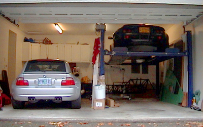 The result? Eeehhh.... Hard to tell. Certainly not a startling improvement, and I think I may have actually lost some throttle response and/or power. I could try a quick run without a filter to see if that makes a difference... Maybe tomorrow. 11/03/01 After the return of the M Coupe from California and the sale of the 325, moving some things around the garage again...