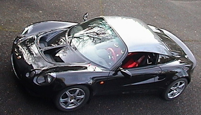 In the process of the wheel swap I found out that the motorsport set with the Yokos is just a little heavier than 'road' wheels with Pirellis, at 33 lb vs 31 lb front and 42 lb vs 41 lb rear. Not bad, actually, since both the wheels and the tires are wider. 02/13/02 More sun. Wow. Gotta use it. I mounted the new shaved race tires on the Elise and took it out for a quick run, this time open-top. I should take the top off more often - it's FUN. The new tires are much better than the Pirelli set, which inspired me to get very sideways in one spot (and on these it takes some doing!). Gathered it right back up, didn't even skip a heartbeat. An awesome car! Did I mention it is fun?! ;) I can deal with more rain now. |