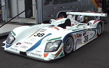 7/30/01 Corvette club track day at PIR. They did not run the chicane, so lap times are not directly comparable to previous efforts. I ran a best of 1:23 with majority of the laps in 1:25 range. The new ECU smoothes the engine out considerably, and adds low-end and midrange punch, but doesn't do much for the top end. If anything, the initial impression is that I lost some power up top judging by speeds at the end of the straights. Maybe a matter of further adjustment, maybe not... either way, the exhaust and the ECU together certainly don't deliver the claimed power gains, and for a combined total of a well over $2K the value is questionable... Still, it's in there so I might as well make the best of it. I'm now mostly concentrating on getting better lines through turns and working on consistency. A couple of previous trouble spots have clicked nicely today (2M video ). Also, for some reason a TV crew was on site, and they were so amused by the contortions required to exit the Elise that they did a 15-second spot of me performing this ritual, and a quick talk about the car. LIVE. I didn't ask what channel or why... Maybe someone who knows me will see it and let me know. Not terribly likely. In the back of the parking lot, the Audi ALMS team was getting ready for practice before the race next weekend. These are the same cars that won LeMans for the last two years. Very neat machinery!