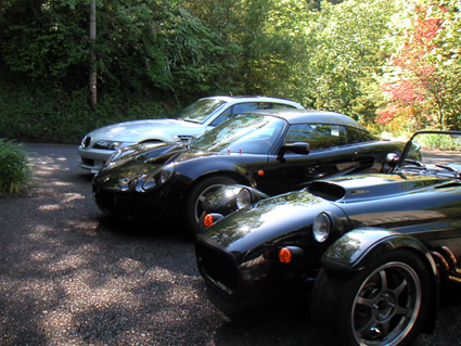 05/12/02 Got some new information on tuning the ECU from the official Lotus newsgroup in England. Apparently the instructions that came with the upgrade kit were incorrect, calling for 2kg/hr idle airflow when it should have been 8. No wonder I couldn't get it down to 'spec'. Also learning from the Westfield experience today, I figured out that my idle surge problem had been due to not enough slack in the throttle cable. When the cable heats up, the outer sleeve expands stretching the cable - and if there's no slack it will crack the throttle open a bit... So hopefully the mystery is now solved. Made all the tuning changes, took it out for a run (and all the other toys as well). Very nice day indeed :)