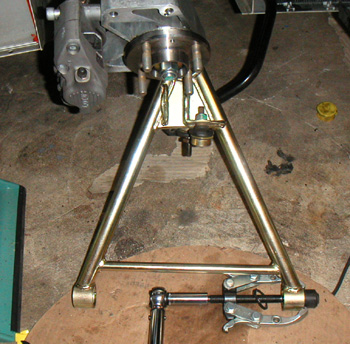I had spent the night before changing the suspension bushings (till 1 AM). Only got the rears done, but the results are pleasing if not dramatic. I was able to up the corner speed to 70 mph from 60-65 earlier, so that is good. Unfortunately I wasn't able to time my best laps as I ran out of tape. The first three sessions I ran the Westfield (in only the second session ever in that car I equaled my best-ever Elise time of 1:30). Then went home and got the 'Lis. I think I may have done a couple 1:30-ish laps in the Lotus, but it is hard to be certain. It is extremely weird switching between the two cars. They are complete opposites, and the Elise feels like a luxury vehicle after the Westfield.... Overall ended up running seven 20-minute sessions. Whew. Awesome day. 6/22/02 Finally got around to installing the front bushings on the Elise. The rears had taken about 8 hours for the whole set. The fronts turned out to be a much more involved job due to the amount of disassembly required. A few panels had to come out to gain access. Overall fairly straightforward.