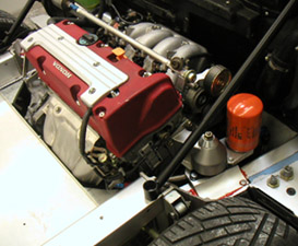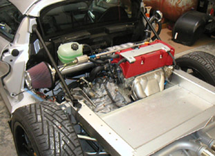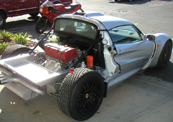 11/17/02 While gathering courage to dig into the Elise to replace the clutch and gearbox, I took a trip down to California to check out a Honda-powered Exige conversion by Prototype Racing. The engine installation is very clean and professional looking. Not exactly cheap, at roughly $12K when all is said and done, but it's in line with what it would cost to supercharge my current VHPD engine to similar power levels. And the Honda motor is not even straining, being totally stock and pushing around only 2/3 of the weight it was designed for - so it should be totally reliable.