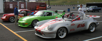 The vintage guys, while cool to see, did cause some issues with a spin in one of the sessions bringing it to a halt and a 55 mph parade for one of them in the novice sessions (where I was instructing). The same car car with a different driver was moving a lot faster (though not fast) in HP session, so it wasn't the car's fault. I can understand being careful and all, but that pace was pretty ridiculous. In later sessions they even allowed passing on the back straight for novices due to that car. In the last session of the day I got to follow a Ford RS200 Group B car for a while - until we both got black-flagged for passing 3 abreast :) I guess we were having too much fun. On pavement the Elise is a faster car but the RS driver is better than I am so we ended up being reasonably well matched. The RS seems to be quite a handful on the track - I could see him counter-steering in nearly every turn.