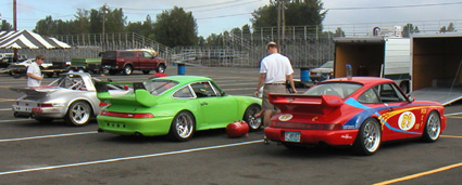 08/20/03 BMW track day at PIR. Decided to run the Elise this time. Weather was perfect for it, and just felt like the right car for the occasion. The Elise did get a brief outing at the last track day to stretch its legs, but needed a full day before the track season is over. And that it got - full 120 miles at speed. For the most part I treated this day as instructor duty and gave rides to a few people to give them an idea of what the car is like. The tires are going away and will need to be replaced this winter. A few slightly-sideways moments due to that but nothing to alter the heart rate. Quite predictable and benign - and entertaining for the passengers :) I either failed to charge my camcorder battery or something is wrong with it - but either way I got no video today and no lap times. My eyeball timer tells me I was running low 1:30's but nothing too spectacular. Ah well, it was fun just the same (thanks to Michele for the photo).