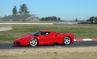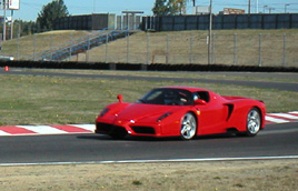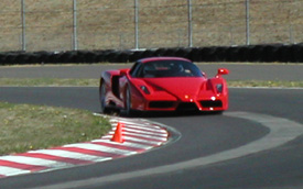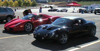 All in all, a very rewarding day. The Elise really could benefit from a suspension upgrade, of course (the tires scrape on bodywork in turns with a passenger onboard), and will need new tires. Also I had to put in 1.5 quarts of oil after just 600 track miles since last oil change. Something there is not quite right... Time to start making a winter maintenance list. 09/22/03 Drove the Elise a bit yesterday, cleaned it up a little, then today drove it out to drop by at the Viper track day. They don't let non-Viper guys run but I know a few of the people who have them. Also, I was told the Enzo would be there and I wanted to see it run and maybe bum a ride. Sure enough, it was there...