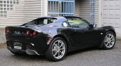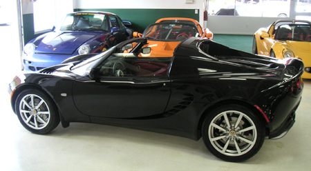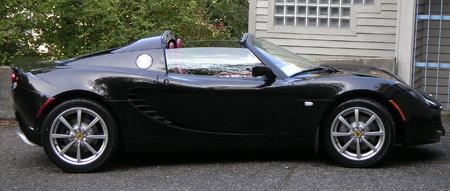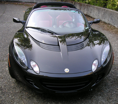Formalities were taken care of pretty efficiently and in less than an hour I was on my way home. After some debate with myself I elected to just take a direct route on I5 and save backroads for when I'm a bit more familiar with the car. First impressions - the brake pedal is way too light. They went to power-assisted brakes for the US car and I think it was a mistake. It almost feels like the gas pedal has more resistance than the brake and heel-and-toe is difficult or impossible. Oh well. The engine is flexible although it doesn't have much punch down low. Similar to the 190 - hopefully once past the break-in when I'm able to go above 5K RPM it will deliver the 190's performance up top. The exhaust has a very pleasant, deep growl to it - MUCH better than any K-series I've driven. The shifter is reasonably precise, about half-way between how the 190 felt before and after I upgraded the linkage in it. Towards the end of the trip, with 200 miles on the clock, the engine seemed to get a bit more power. Or perhaps I'm just getting used to it. Either way, it's quite fun. I do the whole trip with the top off and there is a bit of a wind buffet at around 5K RPM in 6th :) I escape a couple police encounters, including one where I spot the officer just as he's taking aim at me with his laser. Between having good brakes and a black car with no front plate and small headlights, he can't get a fix and I get away with it. Whew. The car is pretty comfortable over long distance, for what it is, and the trip goes faster than expected. The interior is a nice place to be overall. Ventilation seems to work although the air coming through it always seems to be warm regardless of the control setting. I didn't try the AC. On the minus side, the radio is a garish arcade-graphics POS that I really would have loved to have the option to delete. Perhaps I'll have to do it manually. Not that I ever use the radio - I just turned the power on to see what the display looks like. Awful - kinda wish I hadn't done it (serves me right I guess). Blaupunkt used to do classy stuff but no more. Sigh... Anyway, to finish off a trip of 200 highway miles I took a slight detour via my favorite twisty road. The Elise feels very nice and planted in the turns (even more so when I did the same road again later in the day). I think I'm going to enjoy this :) Once home, a few obligatory pictures...