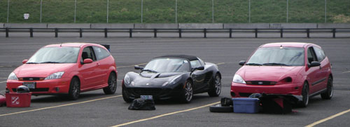 03/18/05 A BMW club day at PIR. The weather has cooled down considerably in the last couple of days so the morning was cold and foggy. As the day went on the sun peeked out a few times and overall the conditions were excellent. Some friends showed up, each driving a Focus (I'm looking to buy a used one for a beater myself). Parked between them the 'Lis looks tiny. It is.