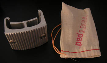 I instructed once again and was happy to get an enthusiastic and capable student driving a MINI S. He progressed quickly, paid attention and had fun. This is when teaching is truly enjoyable :) For my own part, I ran the Elise in the instructor group and had a blast. Pretty much passed everyone. Almost all the laps on video were consistent 1:34 even though it felt like I was going quicker. In the final session I had a great 'battle' with a Porsche GT3. He was faster on the straights but I had him in the corners, despite me being on street tires. Initially I caught up with him and he let me by but stayed with me. After a few laps with the Porsche still in my mirrors at the end of every straight I waved him by (this was the only time someone passed me the whole day) and followed him around for a bit. A few highlights were worth doing a short video. At the end of the clip you can see the turn 10-11-12 sequence that I'm now taking quite a bit faster, even hanging the tail out a little in 12 for the spectators :) This is about as hard as I want to push the car on these tires. The 'battle' with the GT3 finally yielded three laps in the 1:33's so that appears to be my personal comfort limit on the Goodyears. The car is quite fun at this pace so frankly I'm not all that tempted to go to R compounds. Perhaps I won't. The Elise as it is right now (stock except for the GS-D3 tires) is a nice combination of speed and forgiving handling. Just enough edge to keep it interesting, fast enough to pass most things out there when pushed, yet docile enough to allow playing with throttle steer without scaring myself. A great track toy :) 03/22/05 Received the Heel-And-Toe pad from Sector111. One glaring issue with the Elise has been that the brake pedal is too low, making it virtually impossible to heel-and-toe. Those who watched my videos and wondered why I shift so weirdly going into the chicane, wonder no more. In fact my spin a couple track days back was a direct result of that. Now granted, the pedal can be adjusted to eliminate most of the problem. But that requires crawling under the dash on your back or paying the dealer to do same. Neither sounded too appealing so I decided to get the pad instead, which effectively raises the brake pedal about an inch with a 1-minute install. Unpacking it I was pleasantly surprised to find that it comes in a neat custom pouch. No impact on function of course but a nice touch. Makes me feel good about spending the money :)