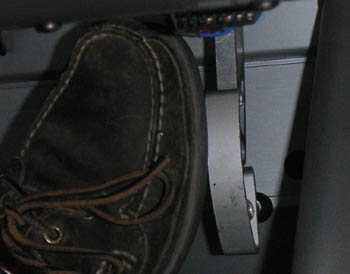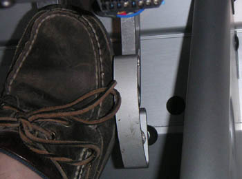 Installation was indeed a simple one-minute affair and the pad looks great in place. It also does work as advertised - heel-and-toe is now effortless so I won't have any more excuses for messing up the shift into the chicane. Below are pictures of the brake pedal fully depressed before and after pad installation. Notice how far below the gas pedal my foot is in the first one.