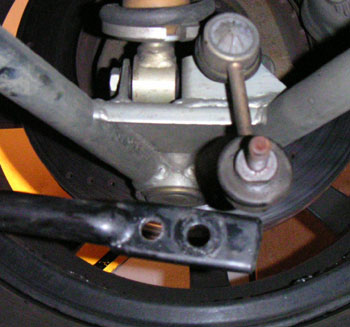 On the way home, turned on the AC and was greeted by a LOUD buzz. It's basically a 10x amplified version of the annoying buzz I've been chasing since day one. It resonates with engine RPM but only happens this loudly when the AC is on. I can push the button and the buzz goes away, push it on again and it's back. Hopefully the dealer will be able to fix this, finally. We'll see. 06/06/05 Decided to drill the antirollbar tabs so that the drop links can be moved to stiffen the bar a bit. Pretty simple operation, especially when one has a lift.