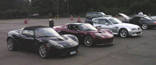A quick test showed the noise gone even with A/C on, so I hope this finally does it. But then again I've thought this before... 06/15/05 While changing the oil in the Box decided to do the 'Lis as well - earlier than due but a good idea given the usage I've put her to lately. Removing the undertray is always an adventure. This time one of the bolts wouldn't come out when asked nicely so it took a dremel, a wide assortment of unlikely tools, some patience and a good deal of luck to extract it. I put a new stainless bolt in its place. Two hours later, mission accomplished. Someone asked me what I was doing changing oil at midnight... Seemed like the thing to do. Speaking of service, a couple of days prior the dreaded noise surfaced once again (I thought it would) and so I kept the appointment at the local dealer, Tonkin Gran Turismo. Yes, there is now a local dealer in Portland which certainly beats driving 170 miles to Seattle. In more ways than one, it turns out. When I got the car back not only was the noise remedied (hopefully!) but the car was washed thoroughly - something Park Place never even thought of doing - and even more importantly, they checked suspension bolts that were supposed to be tightened during 1st service (they weren't, only finger-tight) and reprogrammed the ECU (which was also supposed to have been done but wasn't at Park Place). All under warranty, no charge, as opposed to Park Place's $200-some fee after 'discount'. Glad I live here and not there. Next track day is on Tuesday, the 21st. Maybe I'll get to play with a GPS datalogger.... 06/21/05 Another track day, this one at Pacific Raceways near Seattle.
